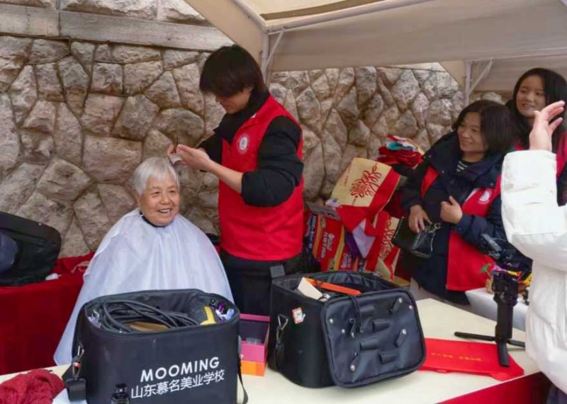 便民服务区:志愿者为老人、儿童提供免费义剪,助老政策咨询台细致解读高龄津贴、医保等惠民政策,让便民服务更贴民心。