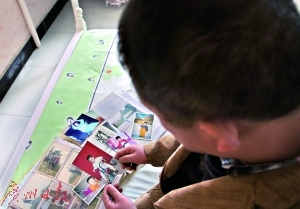 张勇看着女儿儿时的照片。